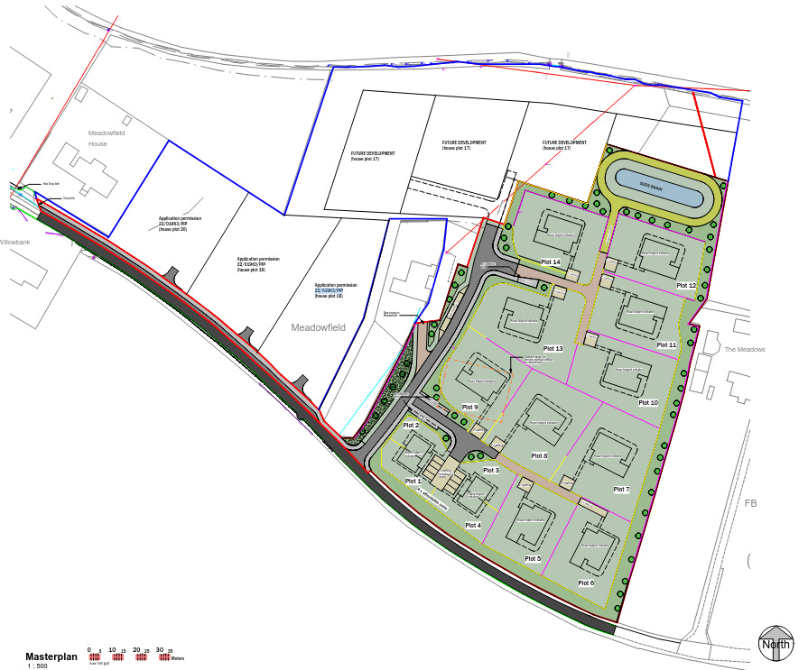 The application 24/02772/FUL is a proposal for 14 houses on land to east of Meadowfield Farm on Moyness Road, Auldearn and is part of a larger scheme for 20 houses, three of which already have planning permission in principle (see application 22/01963/PIP).